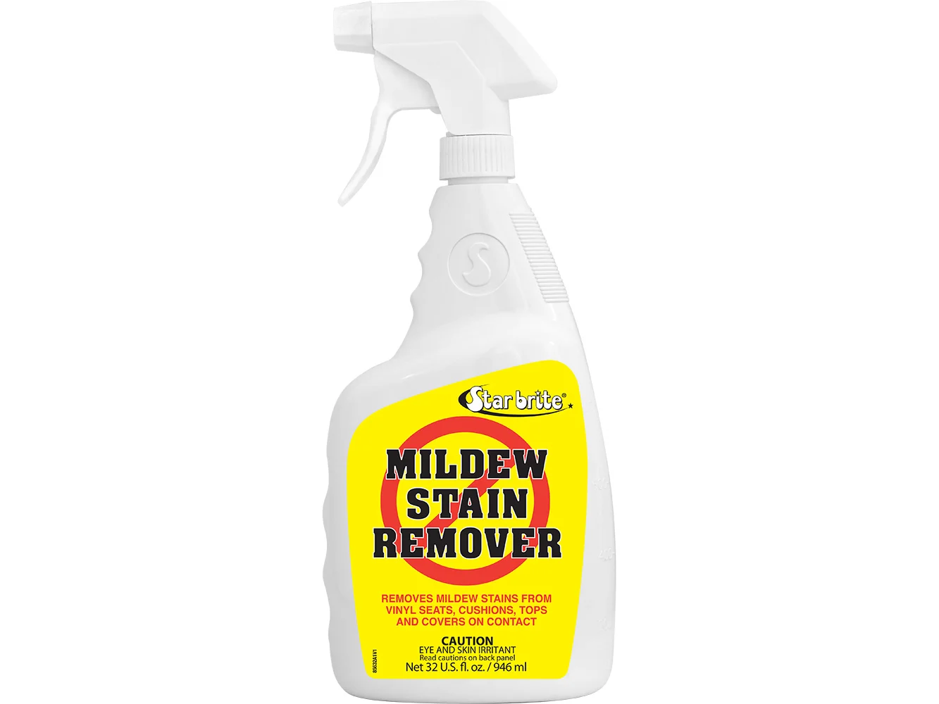 Eliminates stubborn mold and mildew stains on contact without heavy scrubbing. Designed for fiberglass, vinyl, plastic, and outdoor-rated fabrics on boats, homes, and RVs. The triple-action formula with buffered-bleach technology removes stains while being gentle on marine upholstery and stitching.