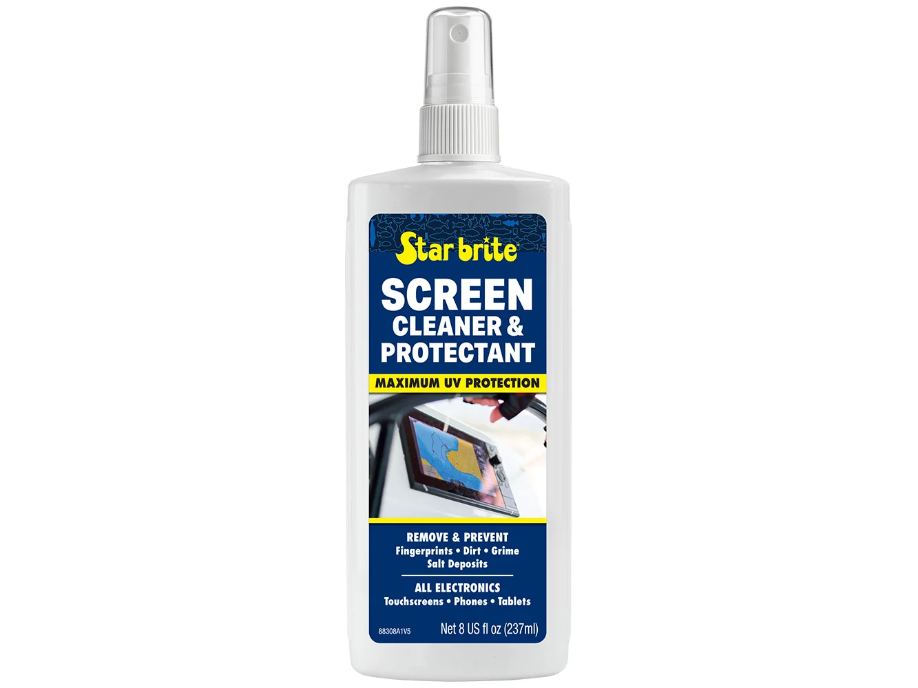 Removes fingerprints, grime, and saltwater deposits while adding UV protection to screens. Designed for marine electronics, smartphones, tablets, and sunglasses. The polymer formula bonds to surfaces to repel moisture and prevent future stains while keeping touchscreens responsive.