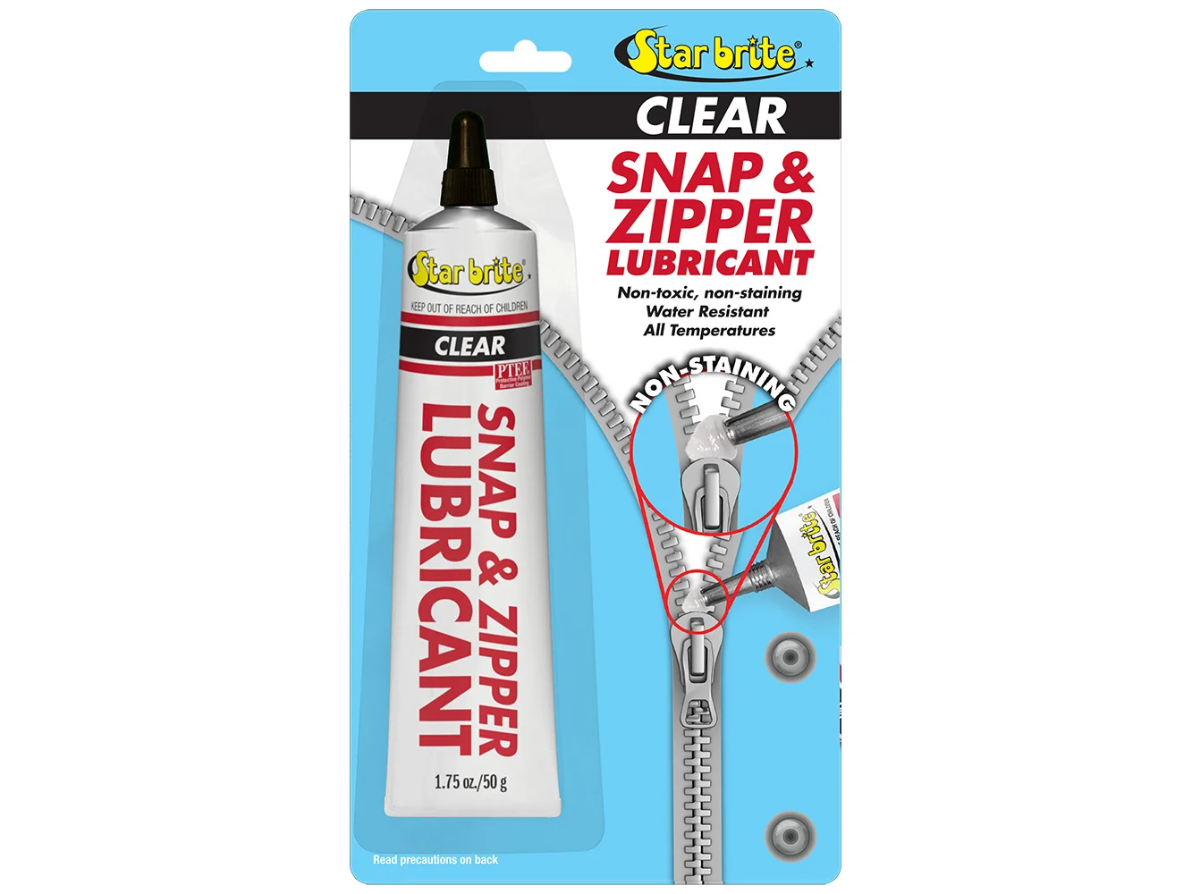 –For snaps, press the tube nozzle into the snap, apply, and push together several times; for zippers, close, apply to the center, and zip open and close to spread the lubricant. A single application can offer protection for months, minimizing the need for frequent reapplications. In essence, Star brite Snap and Zipper Lubricant emerges as a dependable solution for maintaining snap and zipper functionality, making it a vital component in both marine and general household toolkits.
