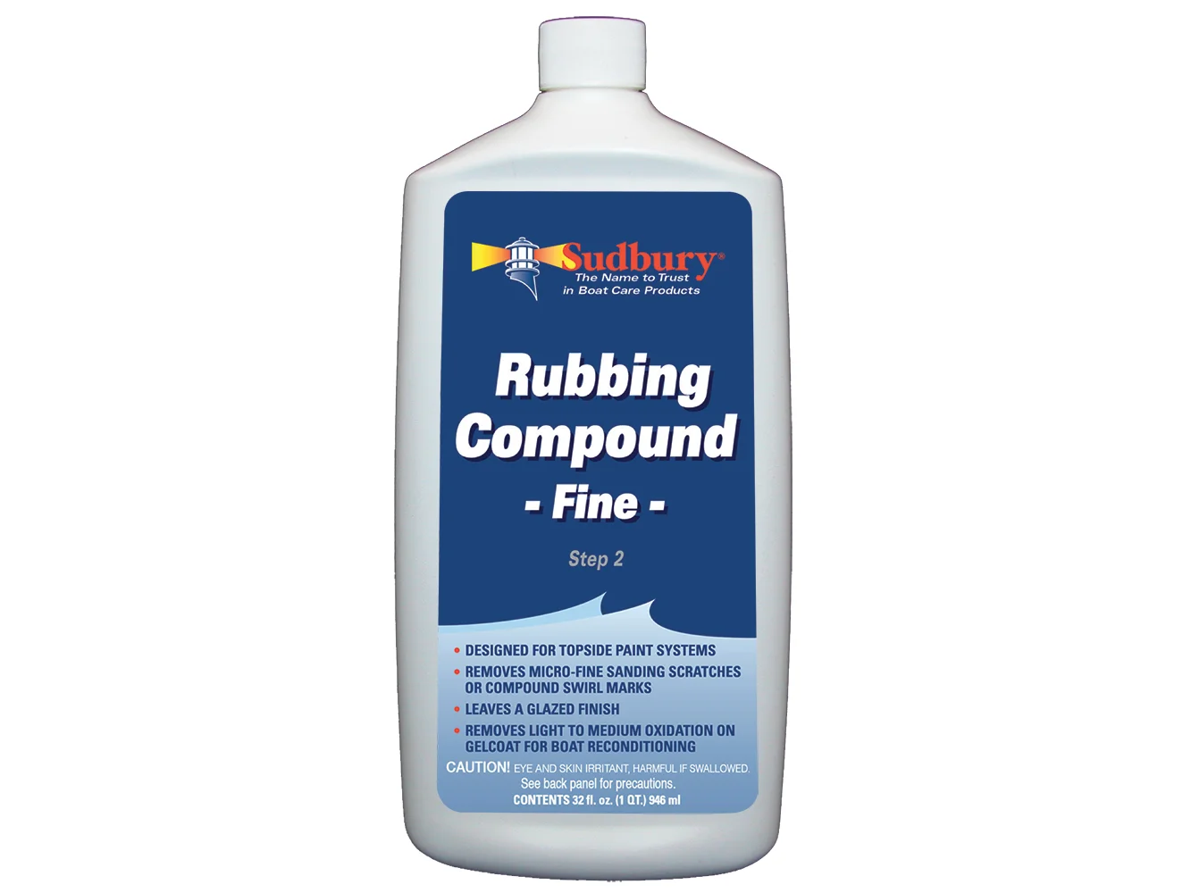 Designed for topside paint systems to remove micro-fine sanding scratches or compound swirl marks. This finishing material leaves a glazed finish. Sudbury Fine RC contains no wax or silicone and is an excellent pre-wax application.