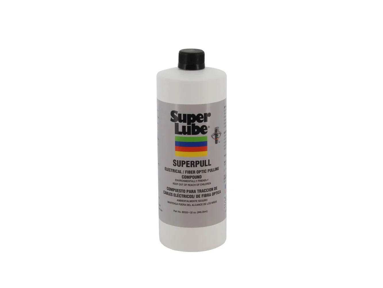 Super Lube® SuperPull Compound is an aqueous polymeric gel. It is a translucent fluid compound that has an extremely low coefficient of friction, used to reduce the effort required to pull cables through long runs of conduit. It will not burn and can be used in temperatures from -15°F to 220°F (-26°C to 104°C).