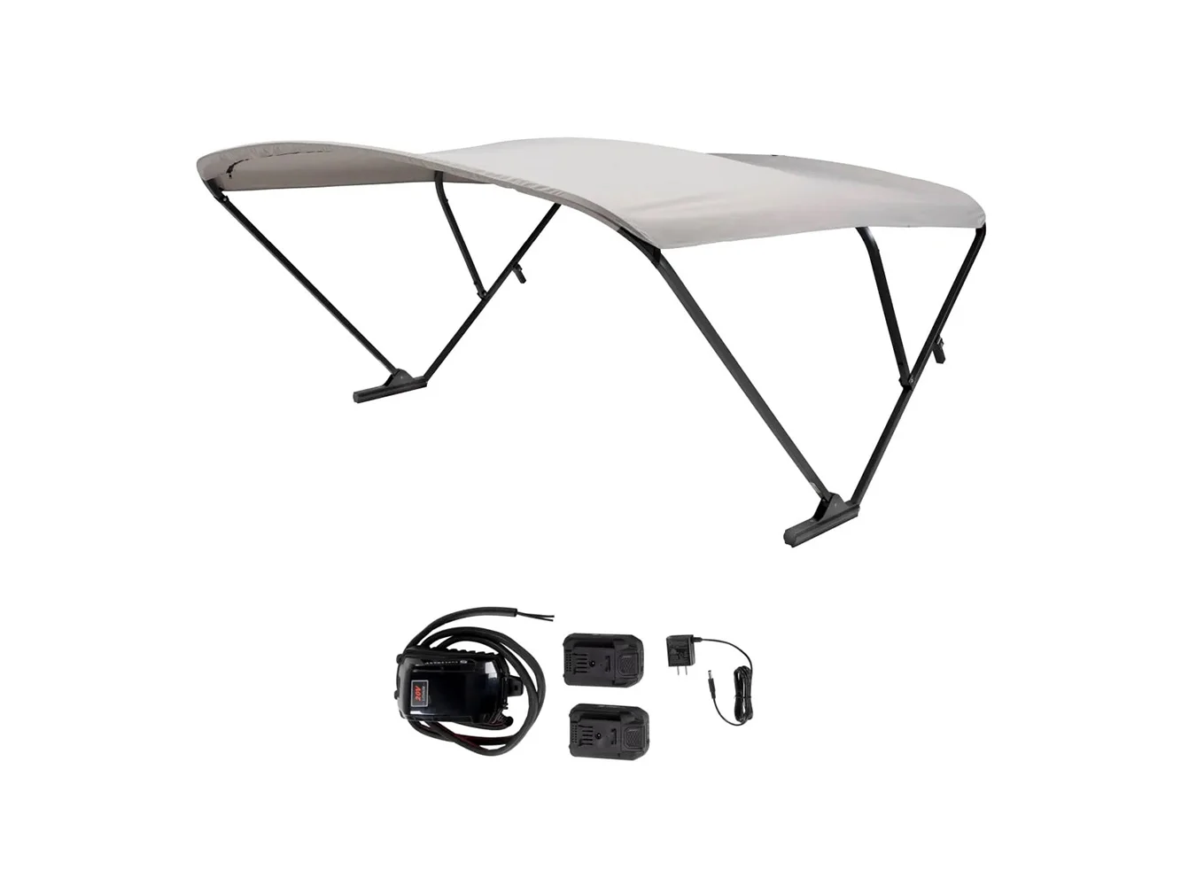Battery Powered Bimini – Black Anodized Frame & Grey Fabric
