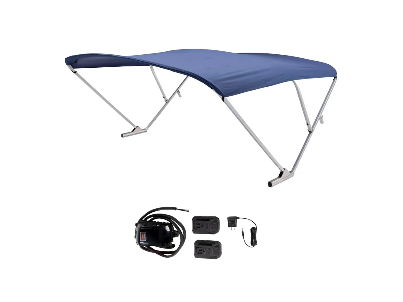Battery Powered Bimini – Clear Anodized Frame & Navy Fabric