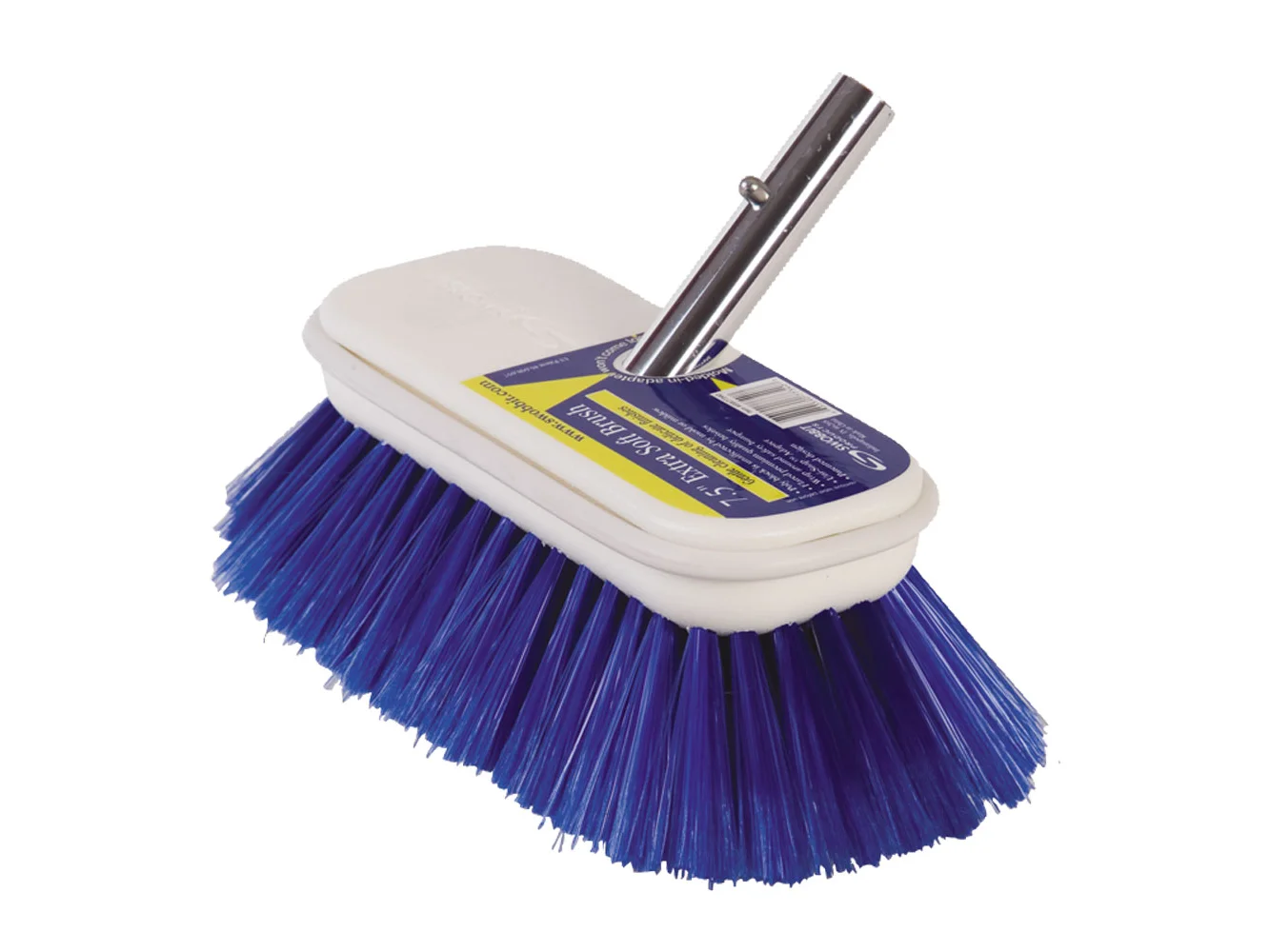 Premium cleaning brush made of high quality poly blocks and flared bristles. Swobbit brushes are perfect for a variety of cleaning surfaces ranging from teak and non-skids to general and delicate surfaces. Uses corrosion resistant staples and wrap around safety bumper to protect surrounding objects.