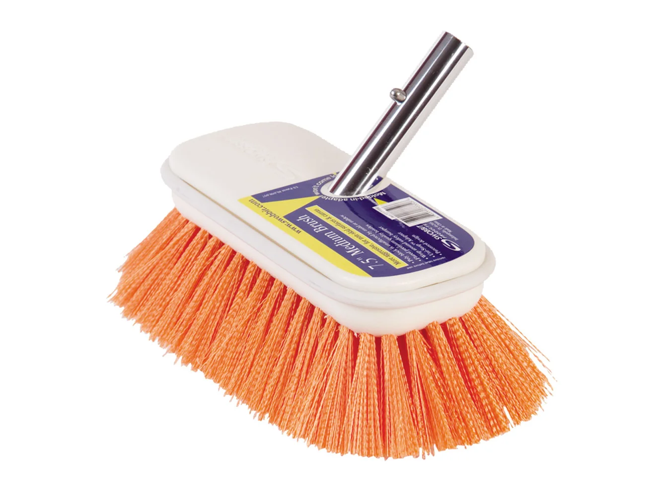 Premium cleaning brush made of high quality poly blocks and flared bristles. Swobbit brushes are perfect for a variety of cleaning surfaces ranging from teak and non-skids to general and delicate surfaces. Uses corrosion resistant staples and wrap around safety bumper to protect surrounding objects.