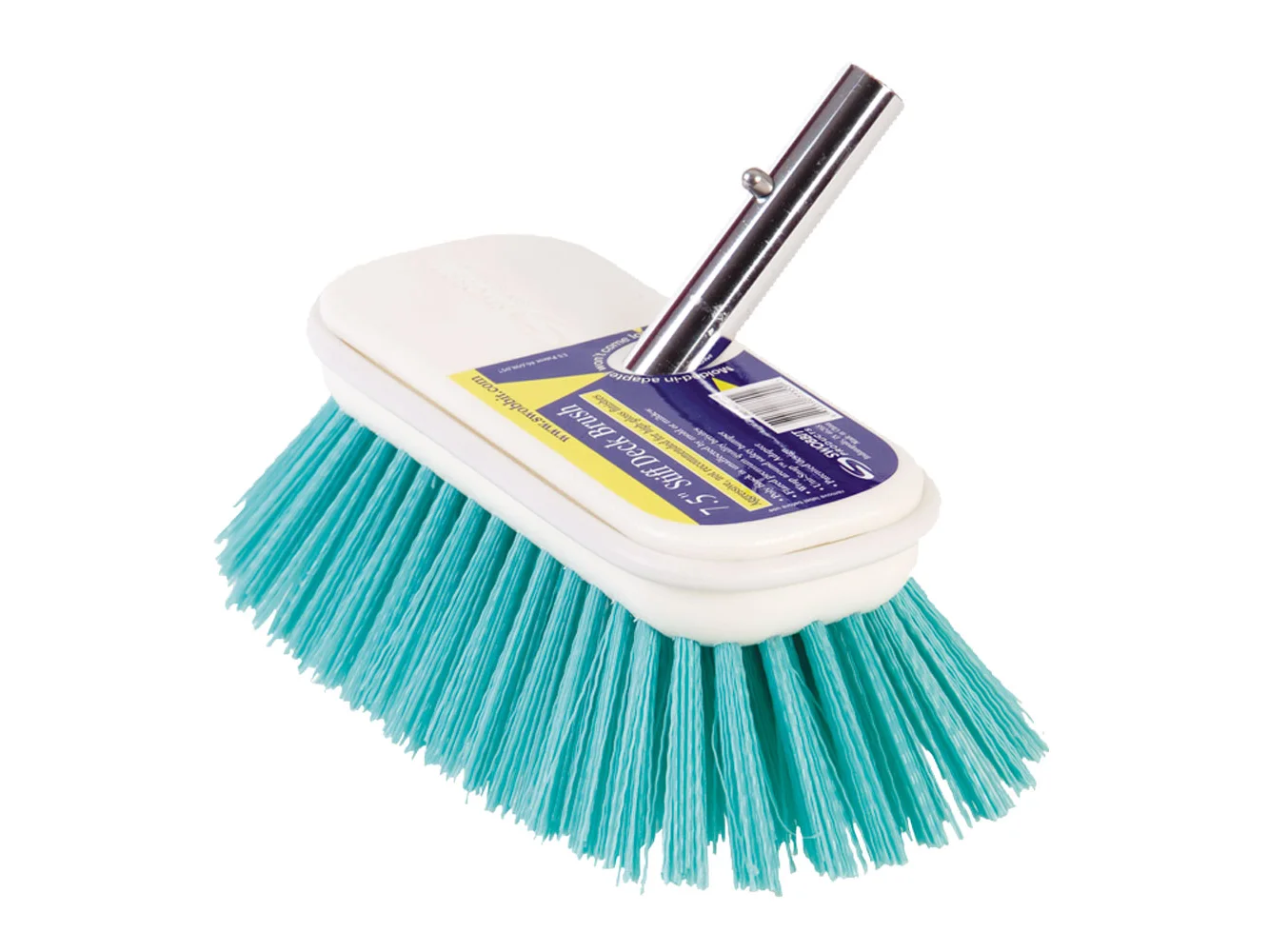 Premium cleaning brush made of high quality poly blocks and flared bristles.  Swobbit brushes are perfect for a variety of cleaning surfaces ranging from teak and non-skids to general and delicate surfaces.  Uses corrosion resistant staples and wrap around safety bumper to protect surrounding objects.