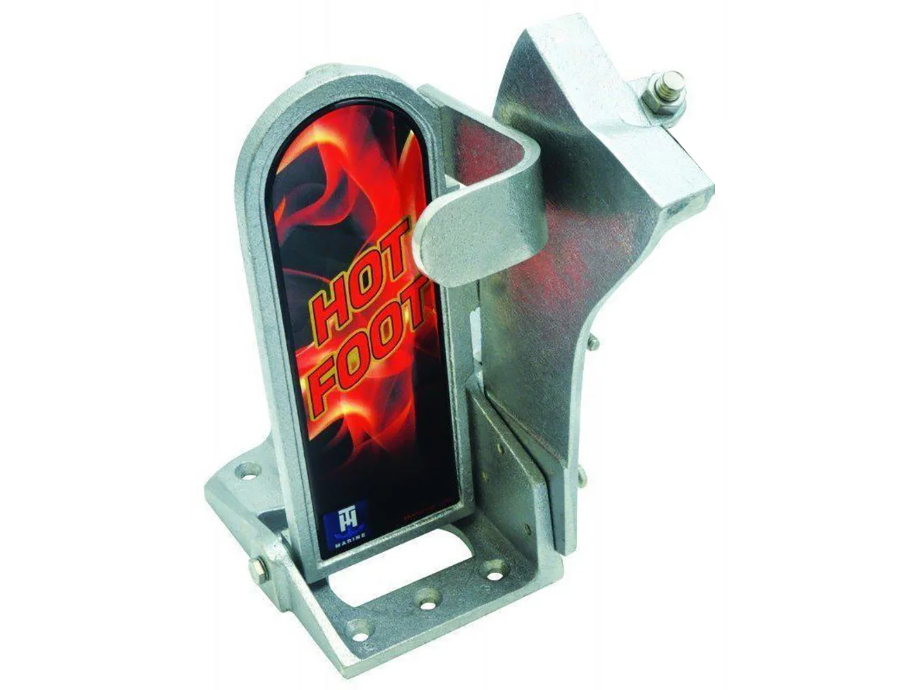 HOT FOOT™ Pro is the ultimate upgrade for the boater looking for safety and performance features that made Hot Foot™ the foot throttle boaters demand. HOT FOOT™ Pro sports a rugged aluminum finish with great color graphics on the pedal to accent any high performance boat. The top loading feature for the throttle cable* makes HOT FOOT™ Pro easier to install and gives more foot and leg room. Standard features include a patented idle stop for the Ficht and Optimax engines, stainless steel return spring, Teflon bushings on all critical pivot points and tow clip for added security.
