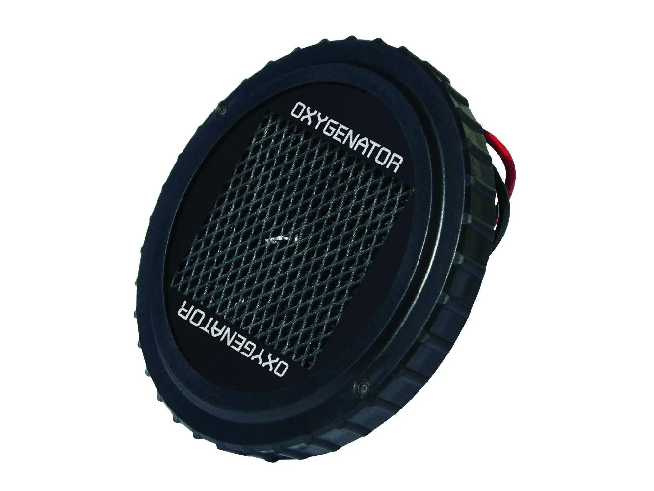The OXYGENATOR™ manufactures 100% pure oxygen by splitting the hydrogen molecule from the oxygen molecule in water. This creates a super saturated oxygen environment, even in the warmest water.Independent testing shows increasing oxygen in livewell improves fish survival by over 35%.