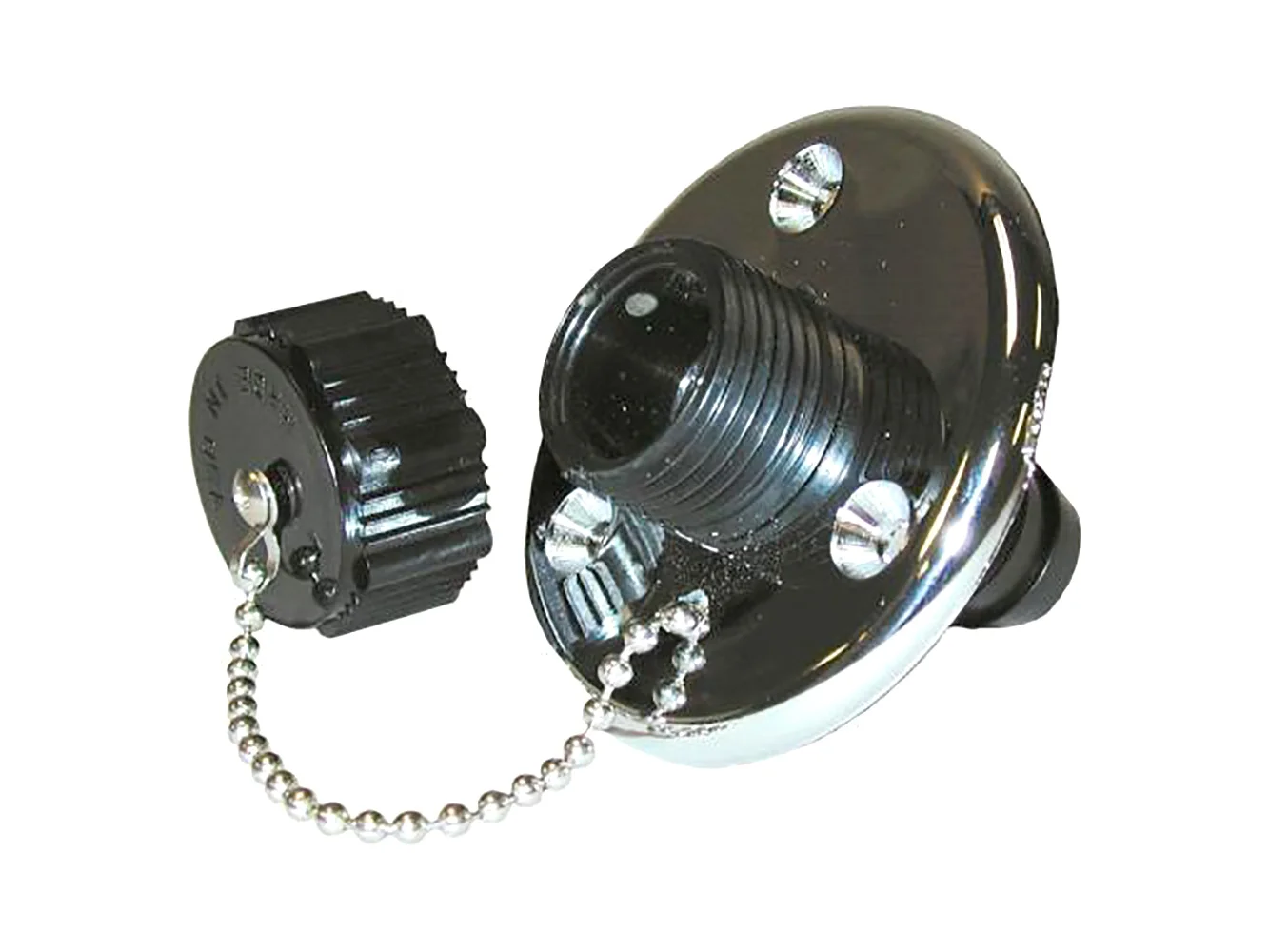 A bulkhead-mounted washdown fitting that is inexpensive, functional, easy to install, and rust-proof. This injection-molded, chrome-plated ABS fitting is 2 1/4″ in diameter and mounts in a 1 1/4″ diameter hole with 3 countersunk screws.