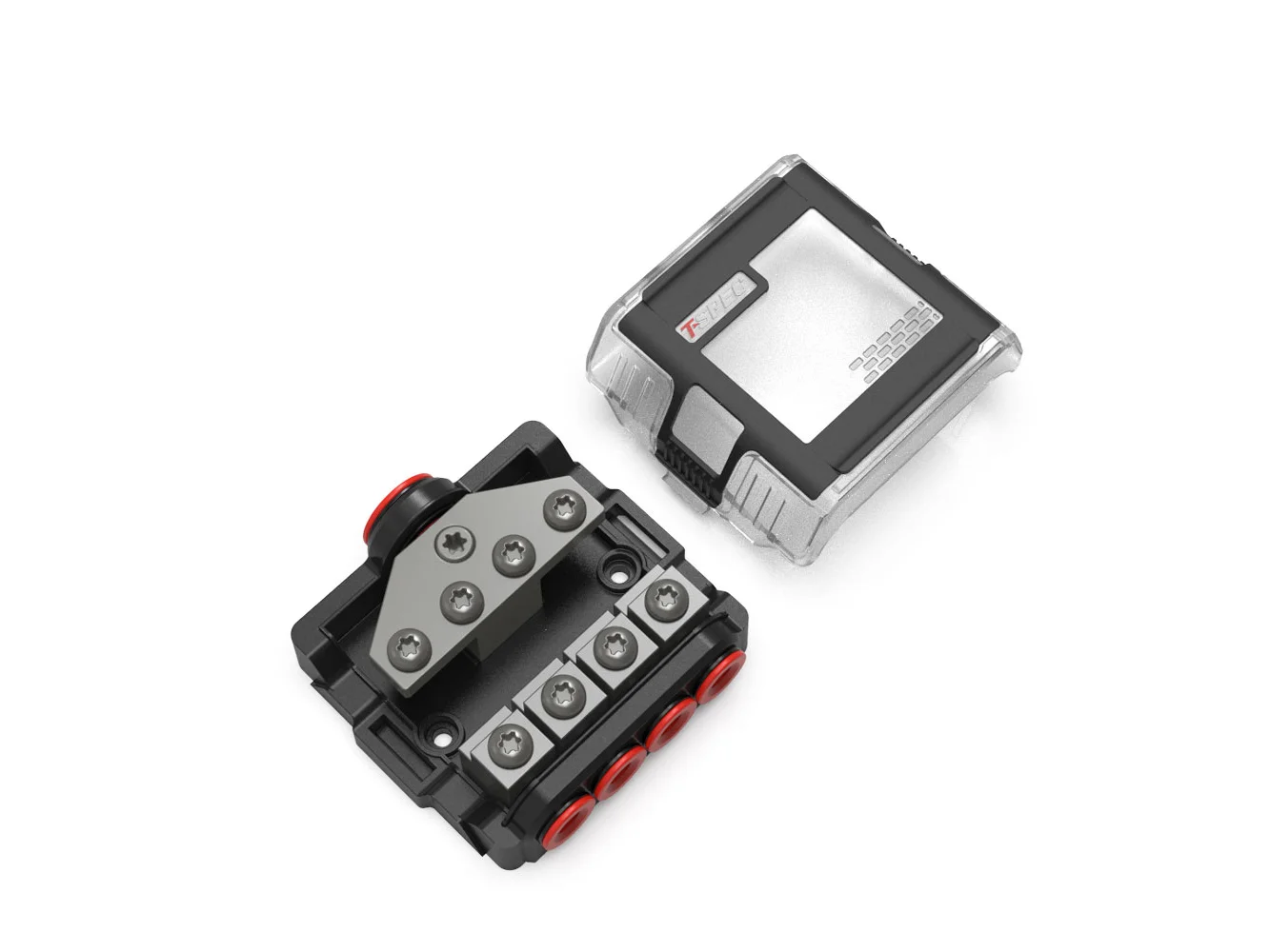 This compact distribution block from T-Spec will handle the high-current power distribution for your single source to four (4) smaller gauge power wires, ensuring that your wiring’s connected securely, looking neat, and safely fused. T-spec’s Universal Screw Design for securing the wires and mini ANL fuses to the block works with a variety of tools. Solid black nickel-plated brass construction ensures reliable power flow, and an impact-resistant polycarbonate cover keeps the fuses and connections clean.