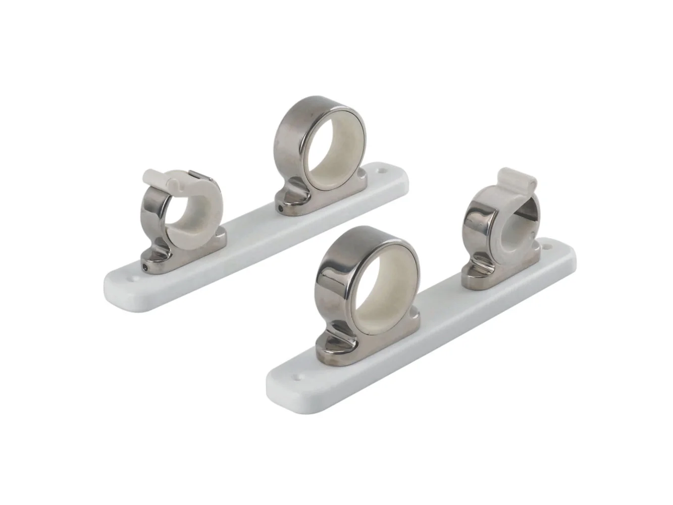 Rod-tip spring design securely locks rods in position. Easy to install UV-stabilized polyethylene racks. Pre drilled recessed mounting holes and beveled edges for clean, attractive look.This product may not be returned to the original point of purchase. Please contact the manufacturer directly with any issues or concerns.