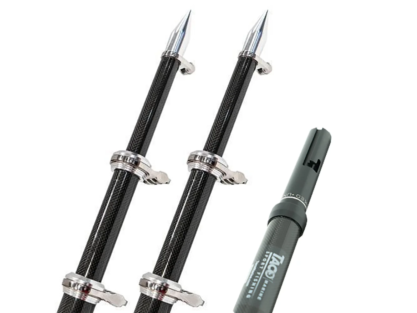 These long outrigger poles pair exclusively with the TACO Pro Series GS-450 and GS-500 Outrigger Mounts. The 24′ poles feature our innovative Twist & Lock butt design, which eliminates the frustrating task of locating a locking pin or bolt hole. Additionally, the 24′ poles have four of our patented 360º swivel collars, which allow for a more natural bait presentation and less friction on halyard lines. These poles are available to boat builders and fabricators right now!