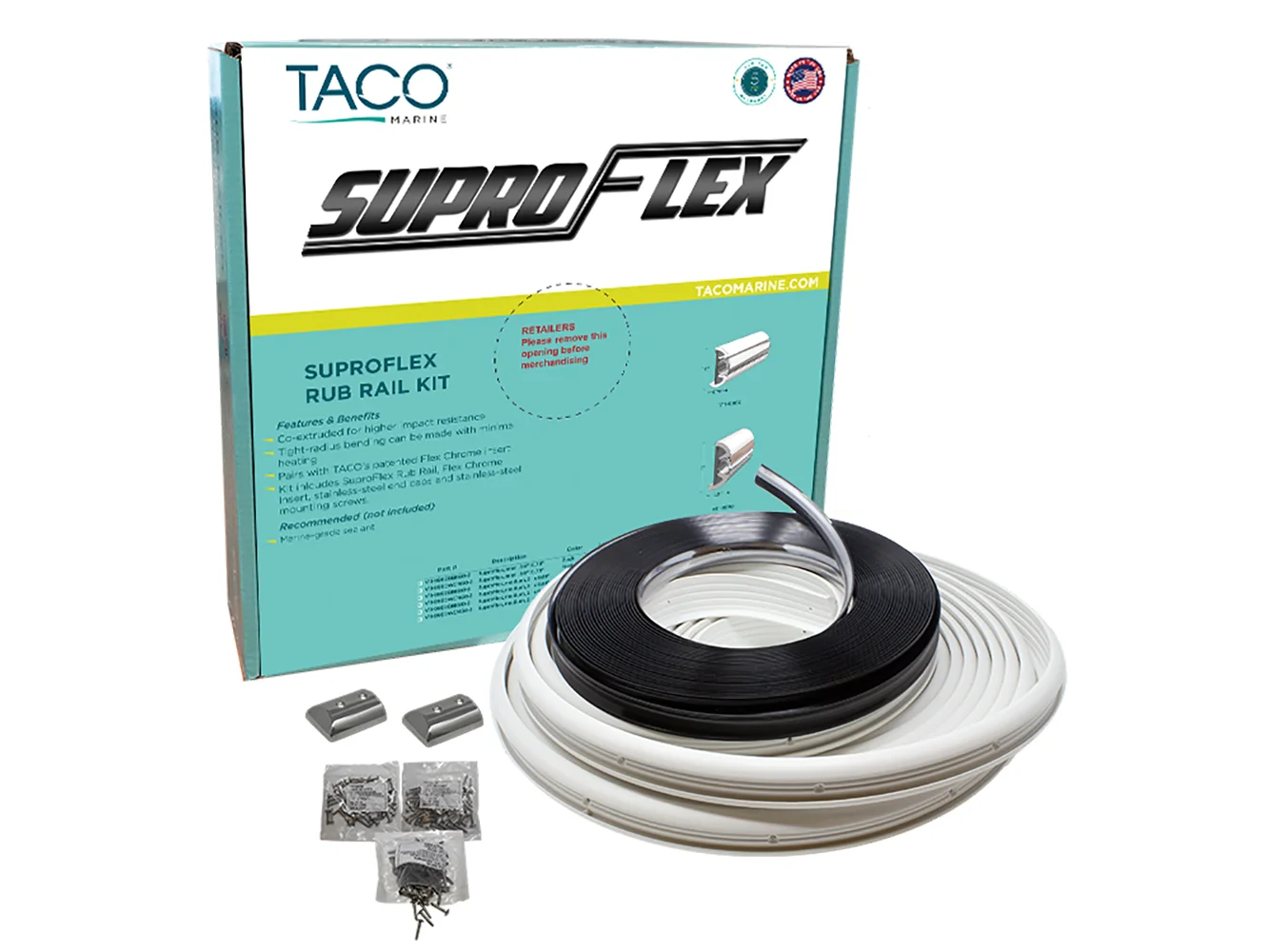 The SuproFlex Rub Rail Kit is lightweight and ultra-flexible to save you time and money while providing a seamless precision fit. The innovative SuproFlex series is co-extruded vinyl that provides two levels of hardness – ensuring enhanced protection from impact. SuproFlex Rub Rail requires minimal heating – reducing installation time and manpower. Additionally, SuproFlex Rub Rail requires no pre-forming and easily molds to most hull shapes.