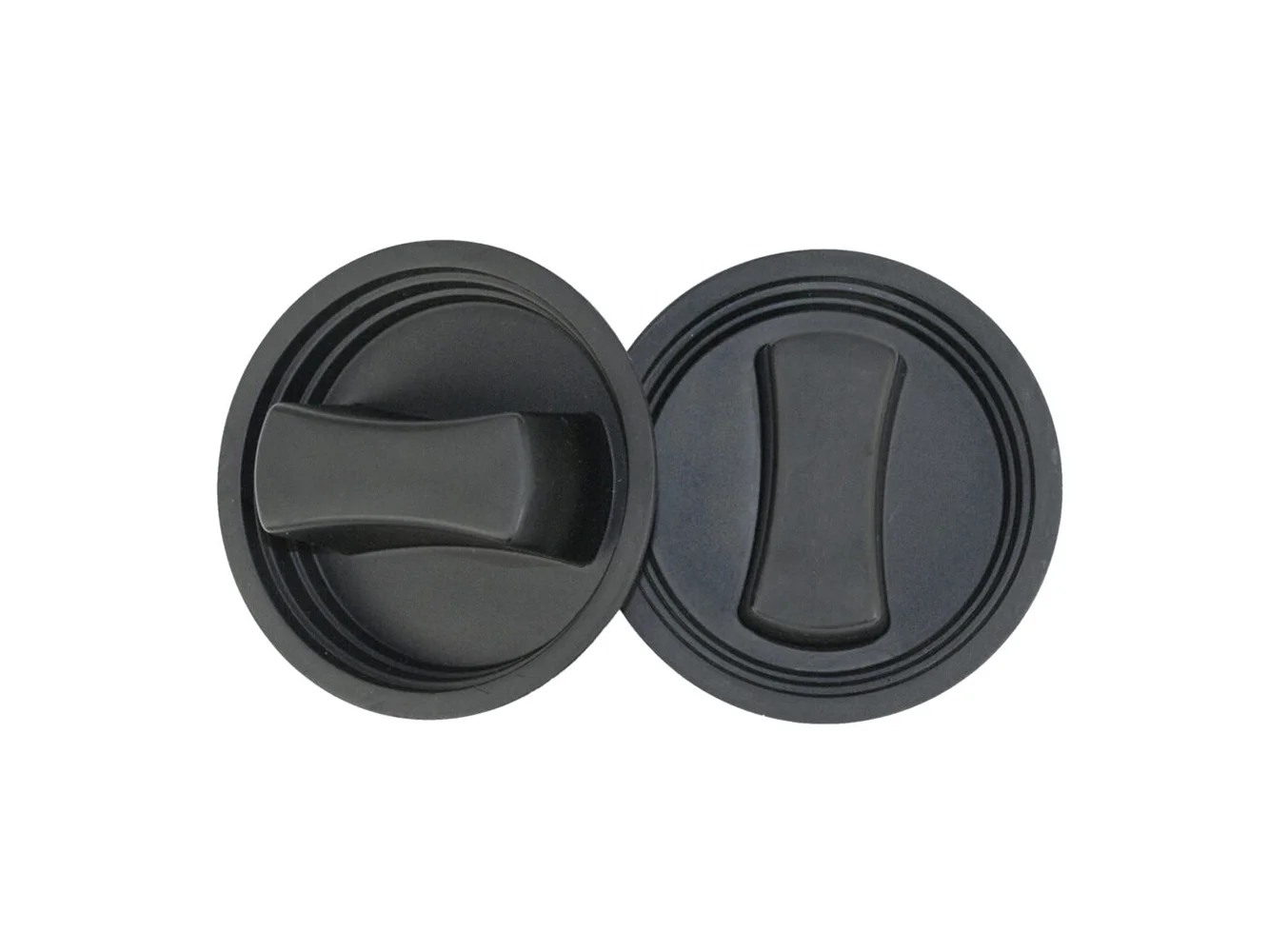 Press-fit RV sewer hose end caps for preventing dripping during storage and transport.