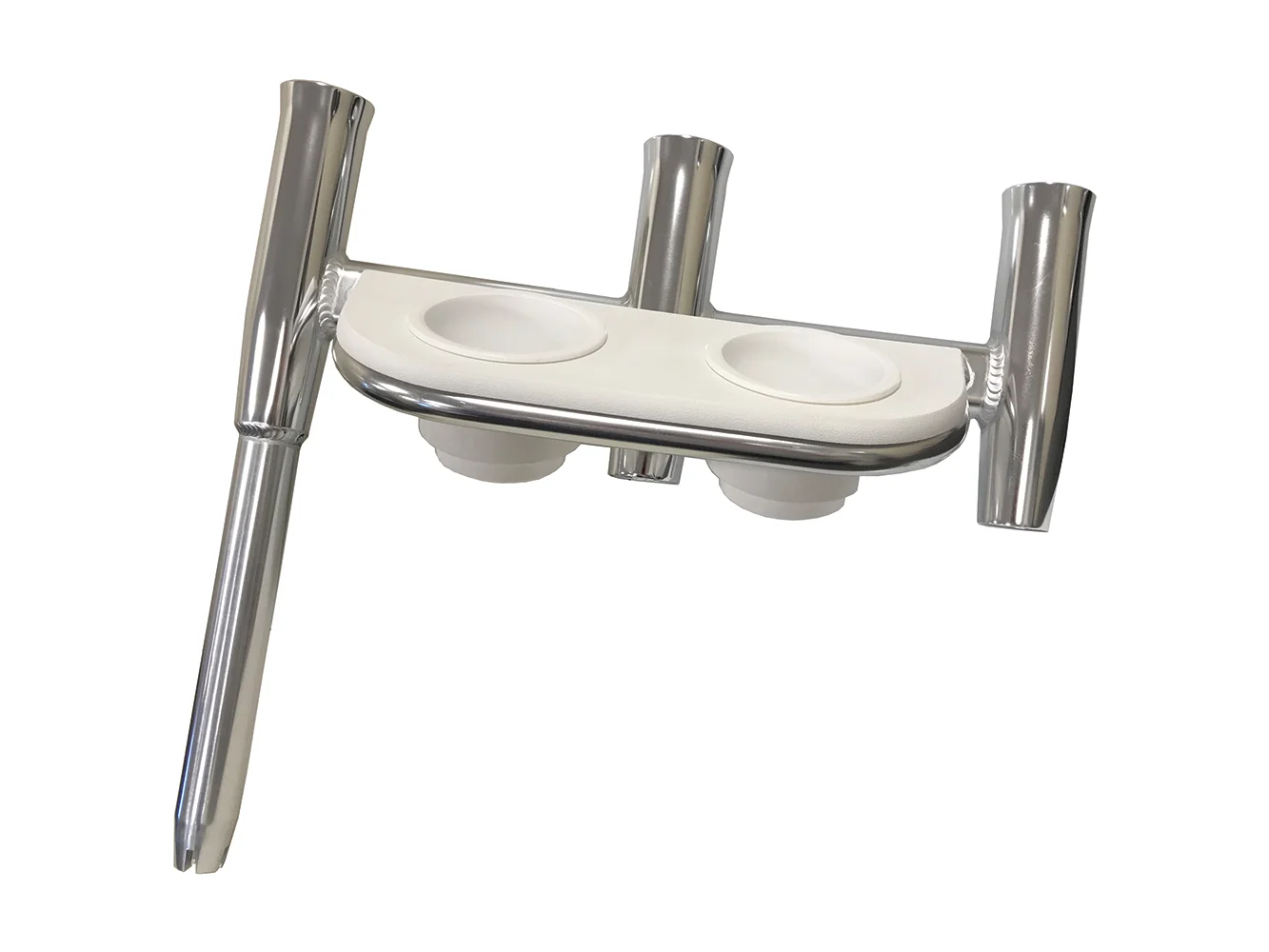 Offset Triple Rod Holder with Cup Holders – Starboard Side – Polished Aluminum