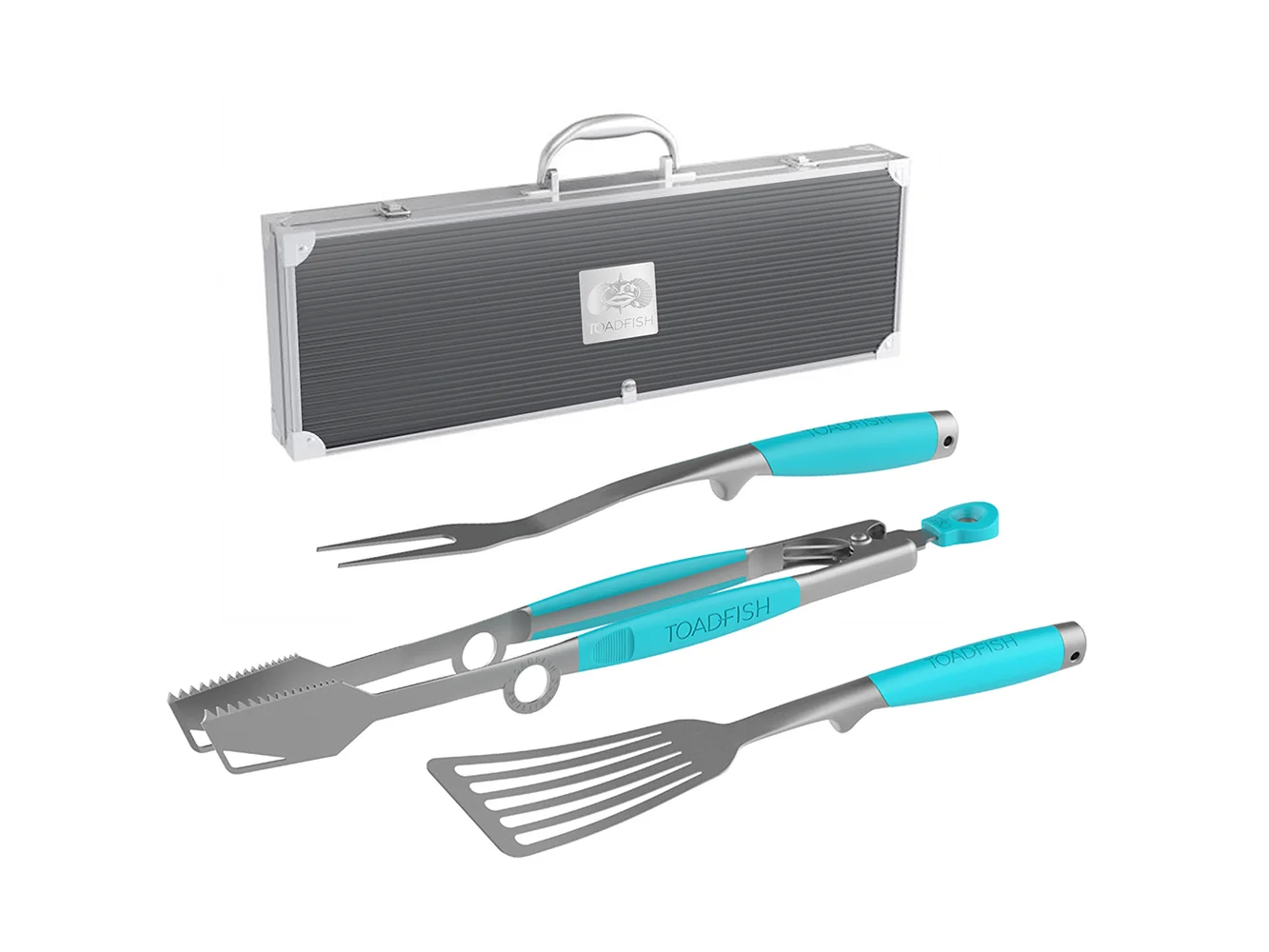 At Toadfish, they love to grill. So, Toadfish set out to design the best tools on the market for backyard chefs as passionate as them. Each piece in this set is a re-imagination of traditional designs with new innovative features that will elevate your grilling game. They are packaged in a beautiful hard case for easy storage. So light the coals, sit back, and enjoy a cold beverage knowing you’ve got the right tools for the job.