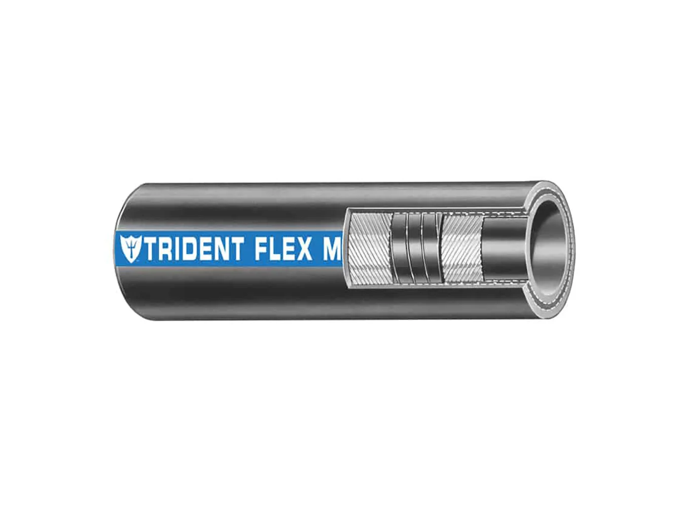Trident Flex wet exhaust hose for longer bent connections. In smaller I.D.’s for engine intake, critical water, drain, scupper bilge & sanitation uses. Resists heat, ozone, exhaust, panting, and collapse. Black High Temp EDPM Rubber 250°F (121°C) Max.