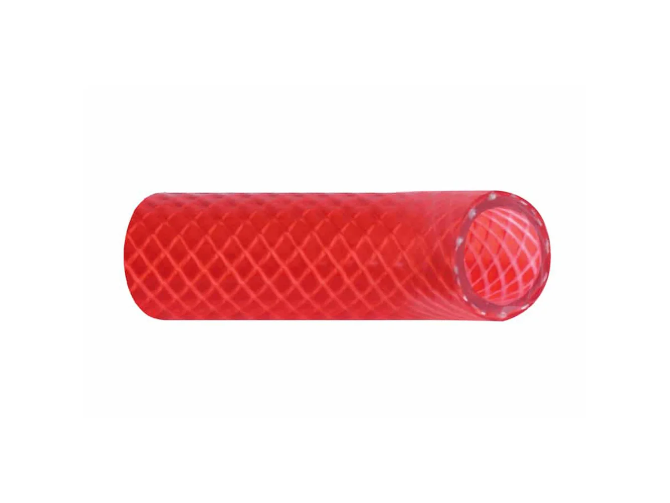 Trident 166 Series Red – polyester reinforced PVC hose for “Hot Water” feed lines. The FDA-grade tube is nontoxic, odorless, and tasteless. Suitable for use in harsh operating conditions with temperatures of up to 149ºF (65ºC) and can handle pressures to a maximum of 250 psi (varies based on i.d size).