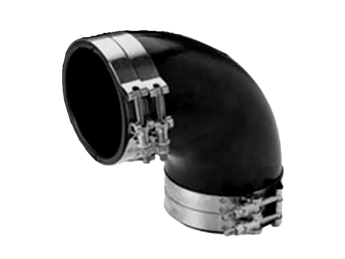 6″ ID 90-Degree EPDM Black Rubber Molded Wet Exhaust Elbow with 4 T-Bolt Clamps