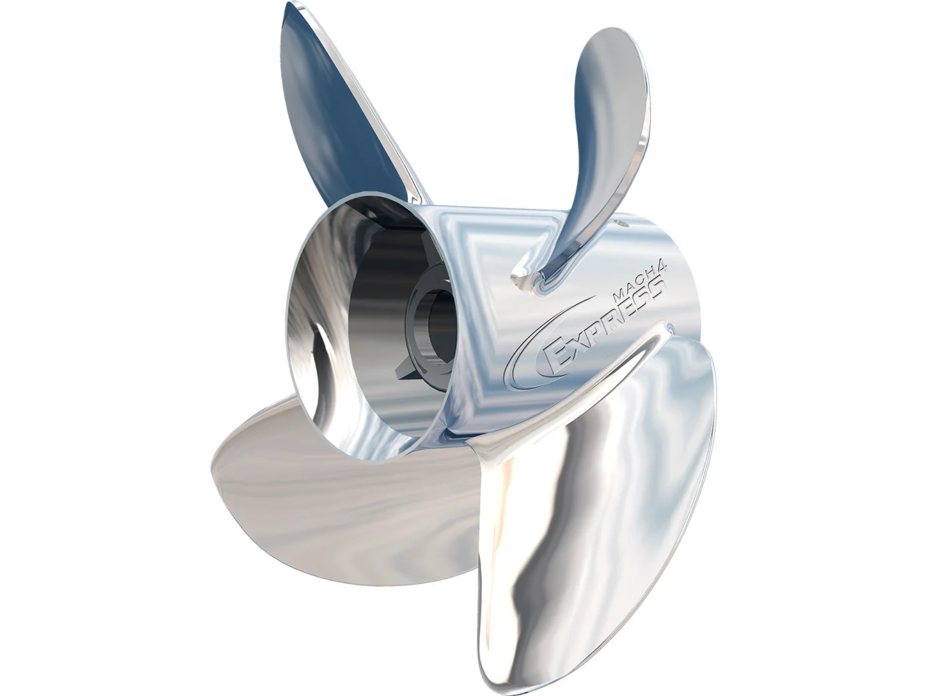 Now manufactured in our Industry leading TP17 stainless, the Express Mach4 series is perfect for any application that demands enhanced acceleration, cornering, and load carrying capabilities. This prop series is ideally suited for watersports, sterndrive boats, tri-toons, bay boats, and any vessel that can use stern lift. It is our best upgrade of older stainless designs from the 70’s, 80’s, 90’s, and ’00’s, and will outrun most newer props, including five blade ski props.