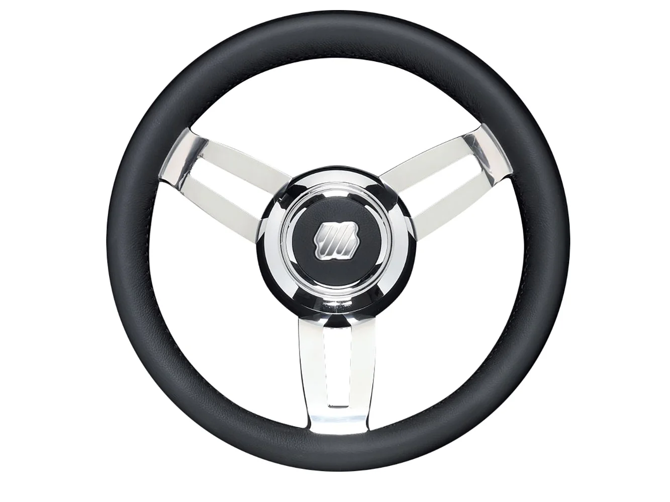 Morosini 13.8″ Steering Wheel – Black Polyurethane with Stainless Steel Spokes & Chrome Hub