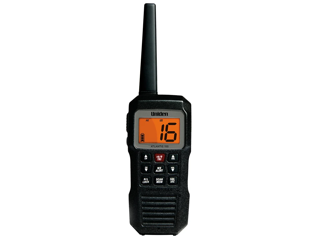 The Uniden Atlantis 155 continues Uniden’s tradition of providing tough and reliable handheld radios. It features all NOAA weather channels, as well as all USA, International and Canadian marine channels. It also meets JIS8 Submersible waterproof standards. The Atlantis’ brilliant backlit LCD display makes it easy to use, day or night for the power to go anywhere.