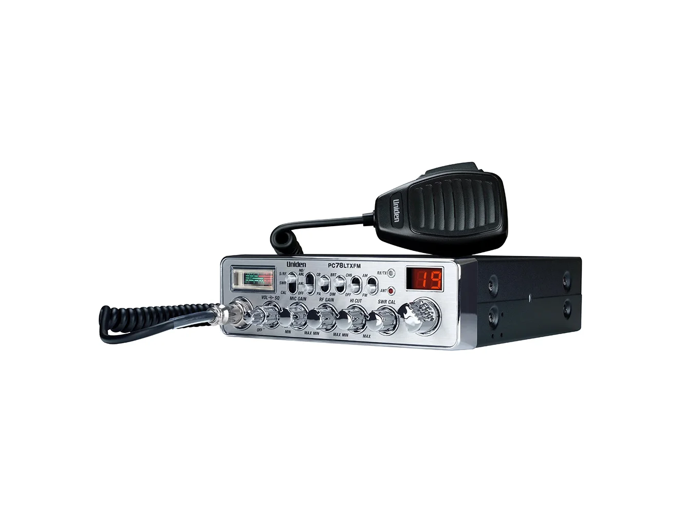 The Uniden PC78LTXFM is the dual-mode AM/FM transmit and receive CB radio from Uniden. The performance enhancement features include an integrated SWR antenna calibration system that allows the user to calibrate the vehicle’s antenna system for optimum receive and transmit performance. Additional features include an antenna warning LED, RF gain and mic gain, hi-cut noise reduction, an automatic noise limiter, and a PA system.