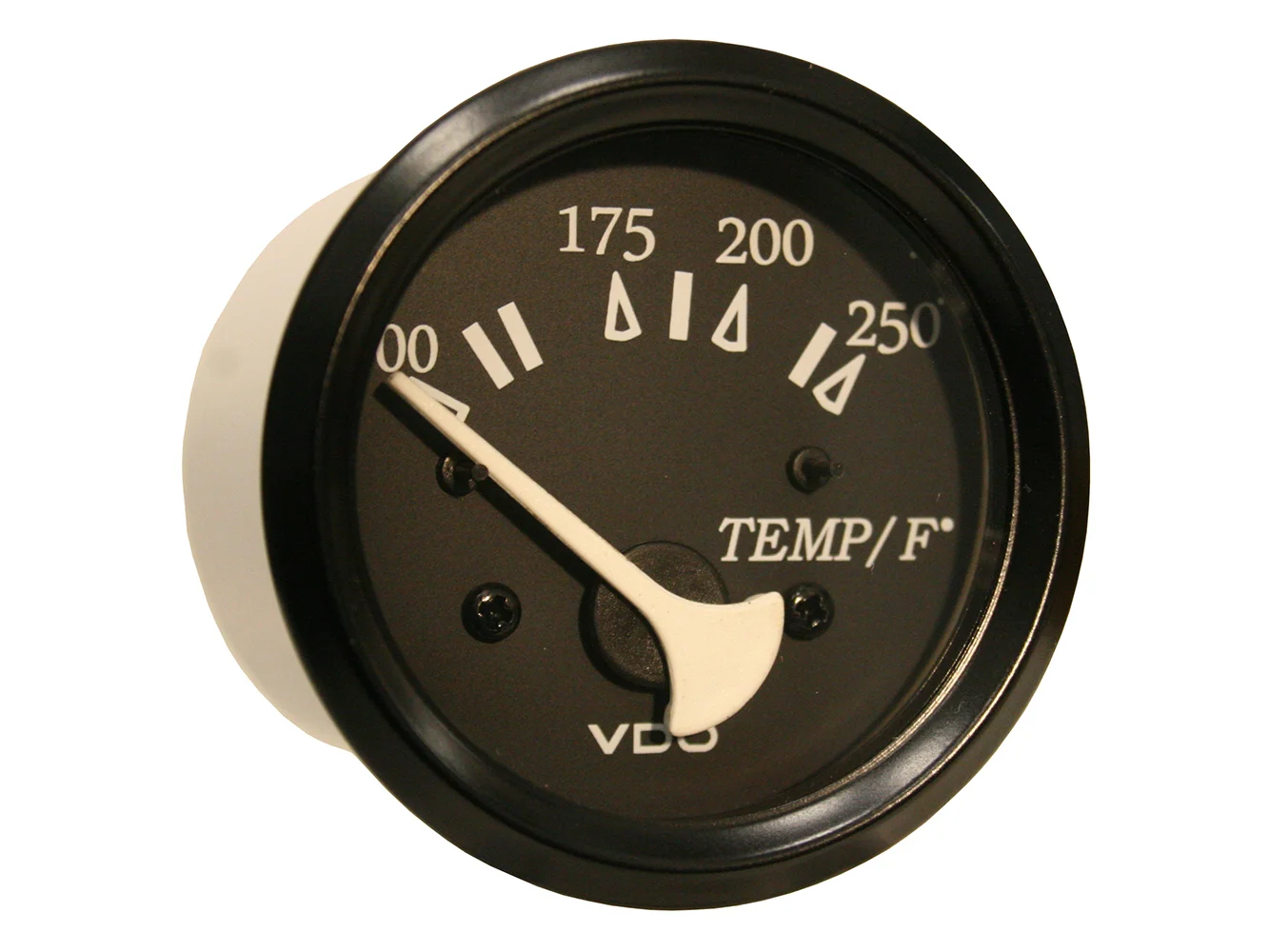 VDO Cockpit Marine 52mm (2-1/16″) 250° F Water Temperature Gauge – Black Dial/Bezel