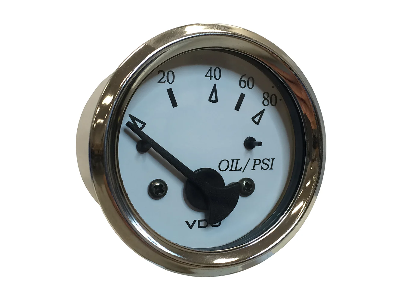 Cockpit Marine 52MM (2-1/16″) Oil Pressure Gauge – White Dial/Chrome Bezel