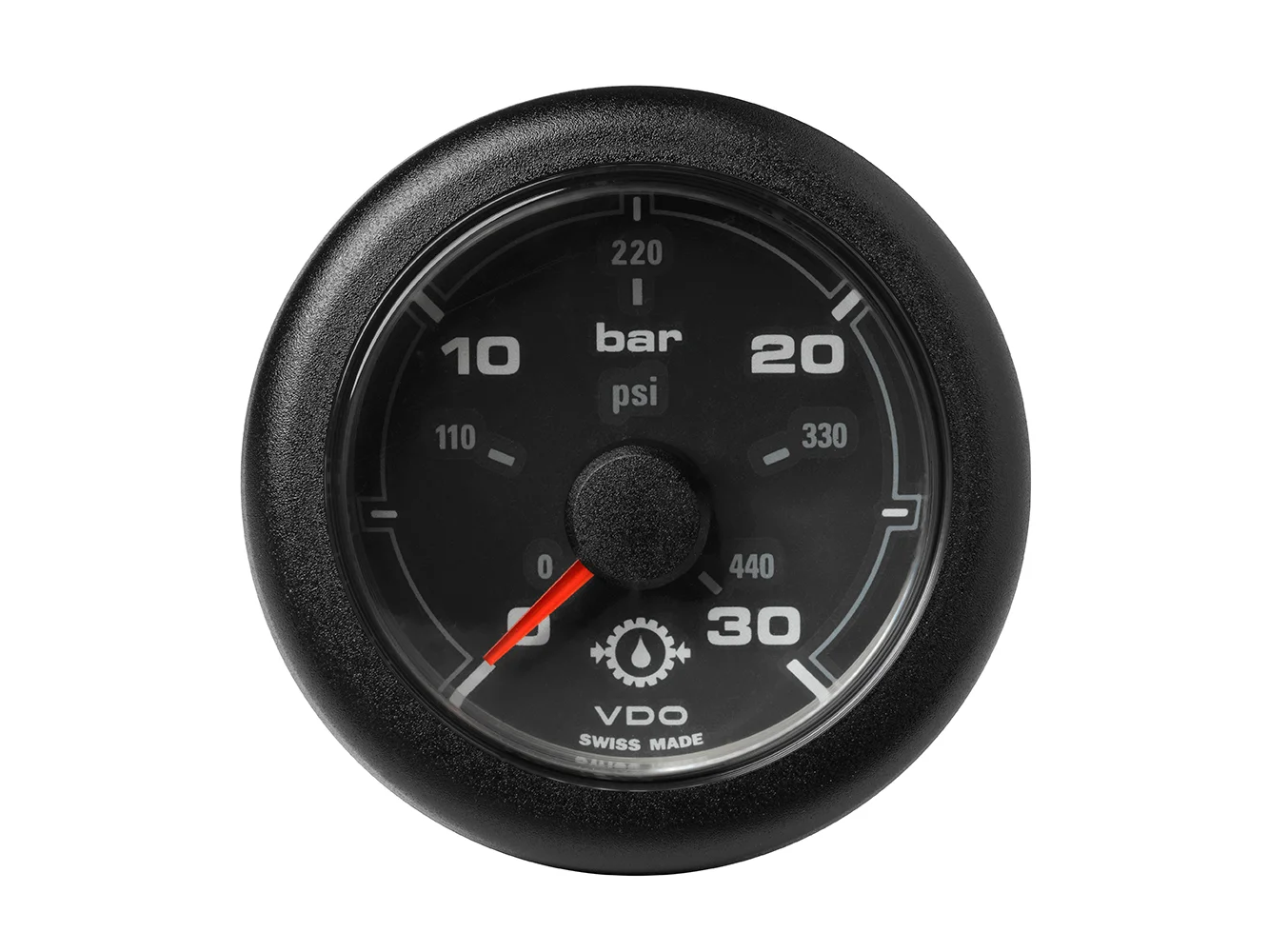 52MM (2-1/16″) OceanLink Transmission Oil Pressure Gauge – 30 Bar/440 PSI – Black Dial & Bezel