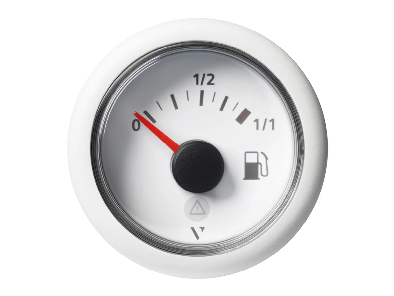 Veratron 52mm (2-1/16″) ViewLine Fuel Tank Level Gauge – 0 to 1/1 – White Dial & Round Bezel
