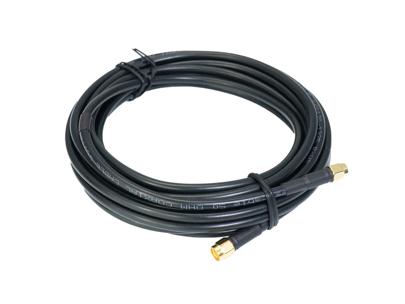 Replacement 5M (16’) coaxial cable for the Cortex GPA680 external cellular antenna. RG58 coaxial cable with SMA connectors and supplied with heat shrink to seal the connection to the antenna pigtail.