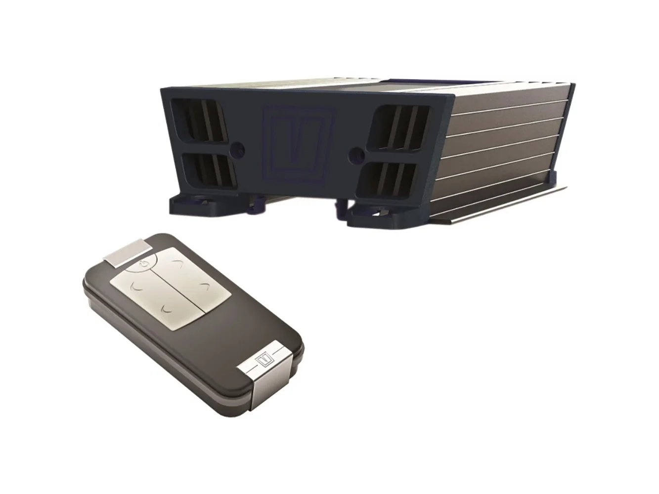 This system gives boaters full control of their electrically driven equipment on board. It includes a base unit, one remote control, and two connection cables. The VETUS wireless control handheld remote has a range of 10 to 25 m, depending on the location of the receiver, and delivers easy control of V-CAN Thrusters and BOW PRO models. The wireless remote control meets the EMC requirements.