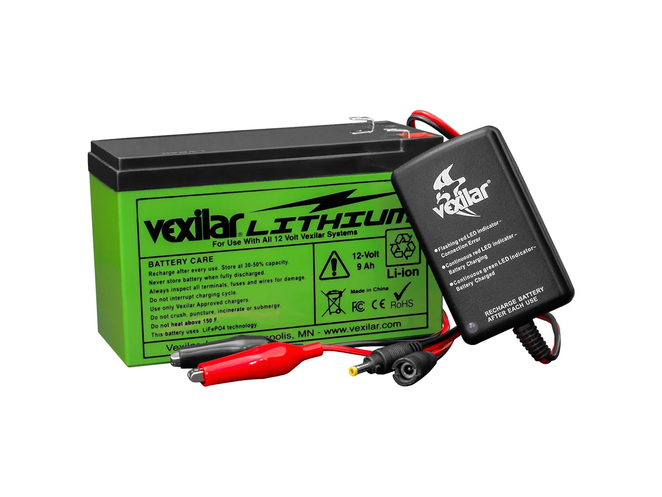 Lightweight and powerful, the V-120L 12 Volt, 9 amp-hour Vexilar Lithium battery has been designed to replace any current Vexilar Flasher/Pack battery and still allow use of the 1 amp, fully-automatic Vexilar battery charger.