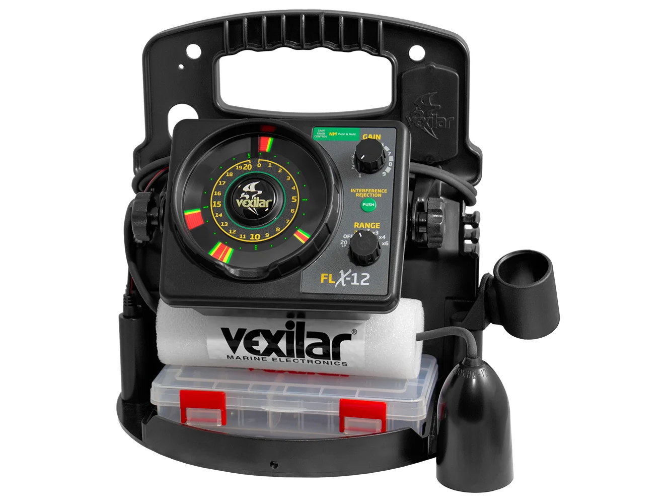 A Pro Pack carry case fits into a five gallon bucket for transport and offers a rod holder and tackle box too. When you put the FLX-12 using Vexilar’s brushless data transfer technology, you get a sunlight readable display with a built in low power mode and ranges to 120 feet. This pack is ready for the ice right out of the package with a 12 degree Ice Ducer transducer.