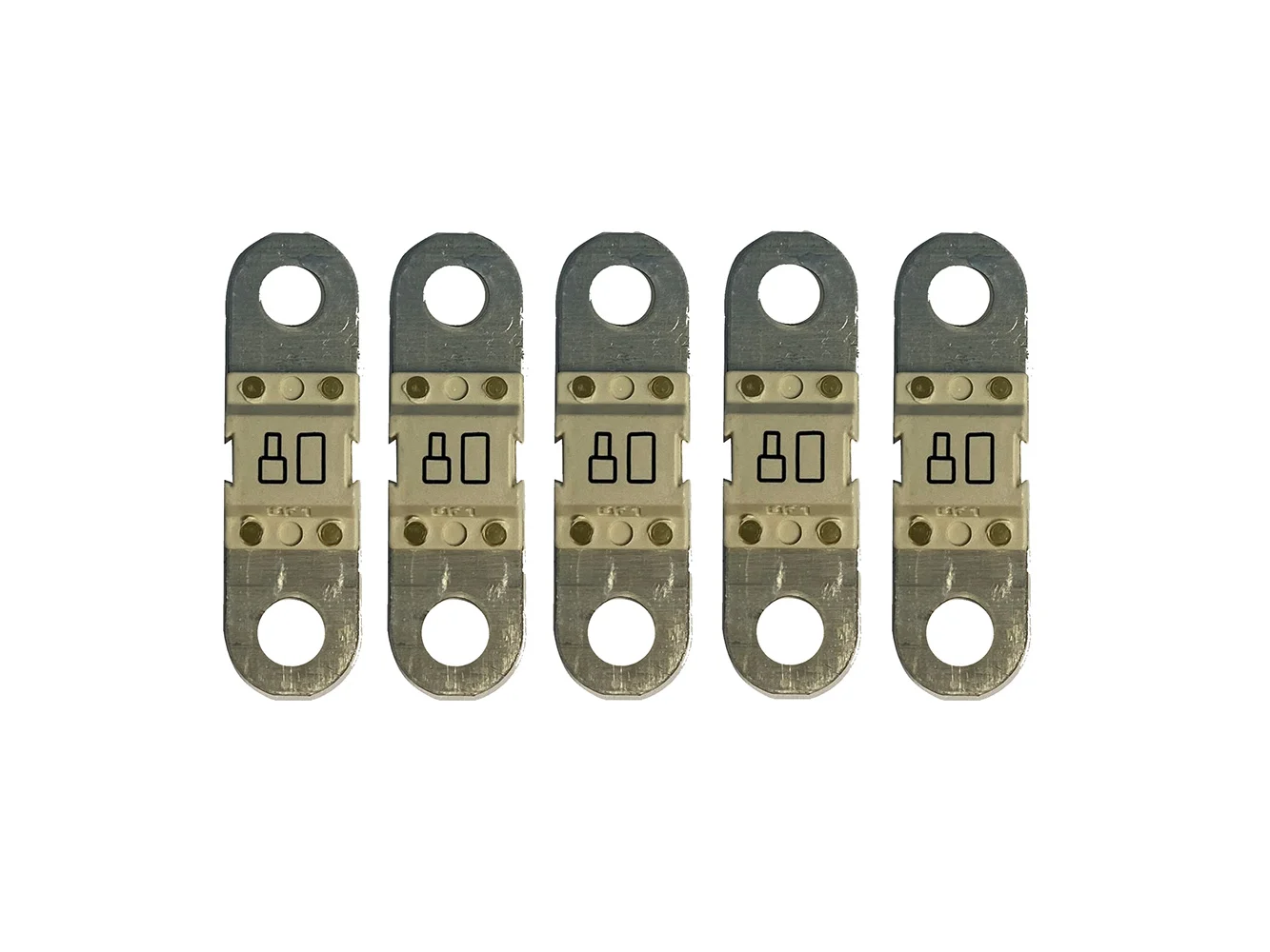 Victron Energy’s MIDI fuses are essentially a smaller version of the MEGA fuses and are known to have low voltage drop and cold resistance. This particular pack of Victron MIDI fuses contains five 80 amp fuses.