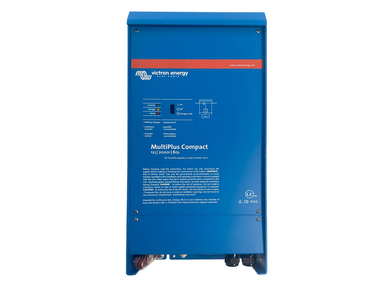 The MultiPlus, as the name suggests, is a combined inverter and charger in one elegant package. Its many features include a true sine wave inverter, adaptive charging, hybrid PowerAssist technology, plus multiple system integration features.