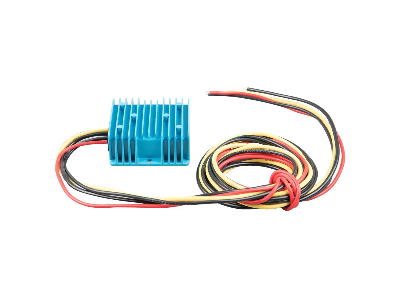 Completely encapsulated: waterproof, shockproof, and ignition protected. Water, oil, or dirt will not damage the Orion IP67 DC-DC Converter. The casing is made of cast aluminum and the electronics are molded in resin.