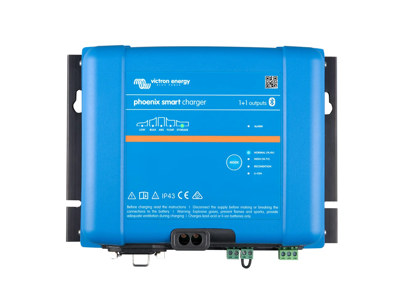 - Phoenix Smart (1+1): two outputs to charge 2 battery banks: The second output, limited to approximately 4A and with a slightly lower output voltage, is intended to top up a starter battery.