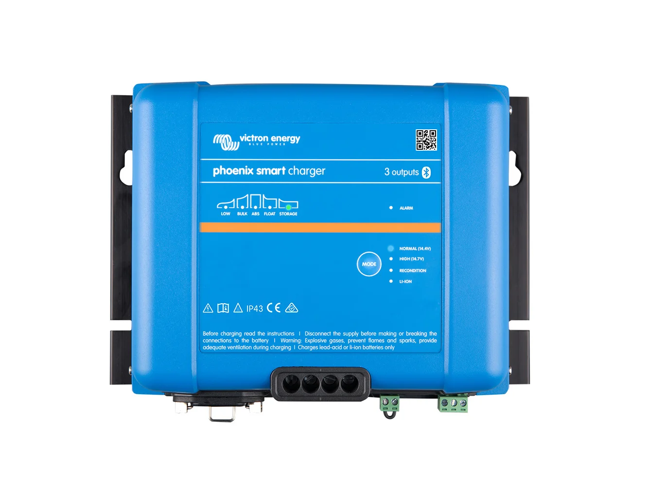 - Phoenix Smart (3): three full current outputs to charge 3 battery banks: Each output can supply the full rated output current. But the total of the 3 outputs combined can never exceed the current rating of the charger.