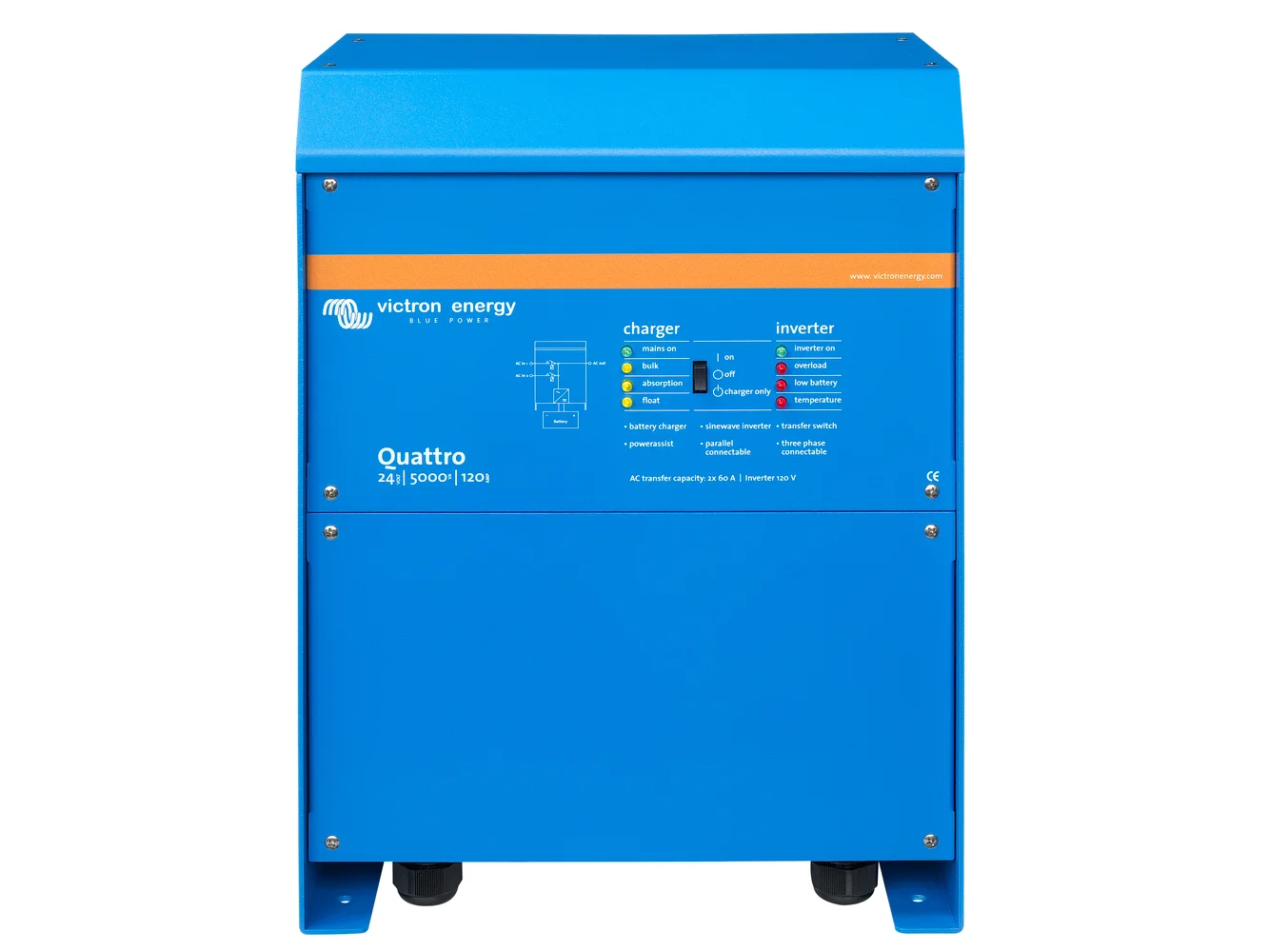 Quattro Inverter/Charger 24 VDC – 5000W – 200AMP Battery Charger, 50AMP Transfer Switch