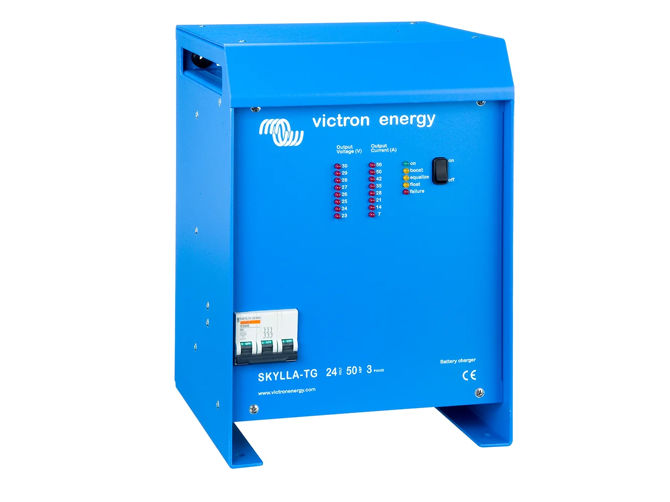The input for the charger is 230V at 50/60HZ. Charge voltage can be measured directly on the battery terminals in order to compensate for voltage loss due to cable resistance.