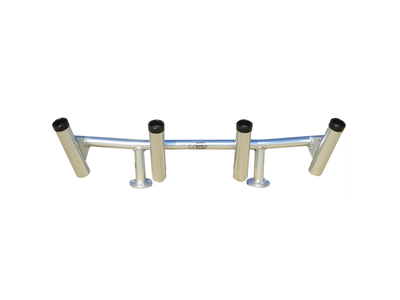 From catfishing to trolling for big game, our stout four-rod rocket launcher was built to handle demanding fish. Its universal design allows for just about any mounting location you can think of. The two outer holders shoot away from the center approximately 15° and down approximately 10°. The two inside holders shoot straight back.