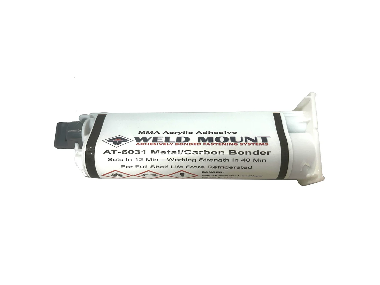 AT-6031 is a 10-to-1 metal bonding adhesive. It has high viscosity (cures in 10–12 minutes), has a 6-minute working time, and develops working strength in 40 minutes. AT-6031 develops more than 2,500 lbs. (psi) of tensile strength on most metal surfaces, making it an ideal alternative to welding in many applications.
