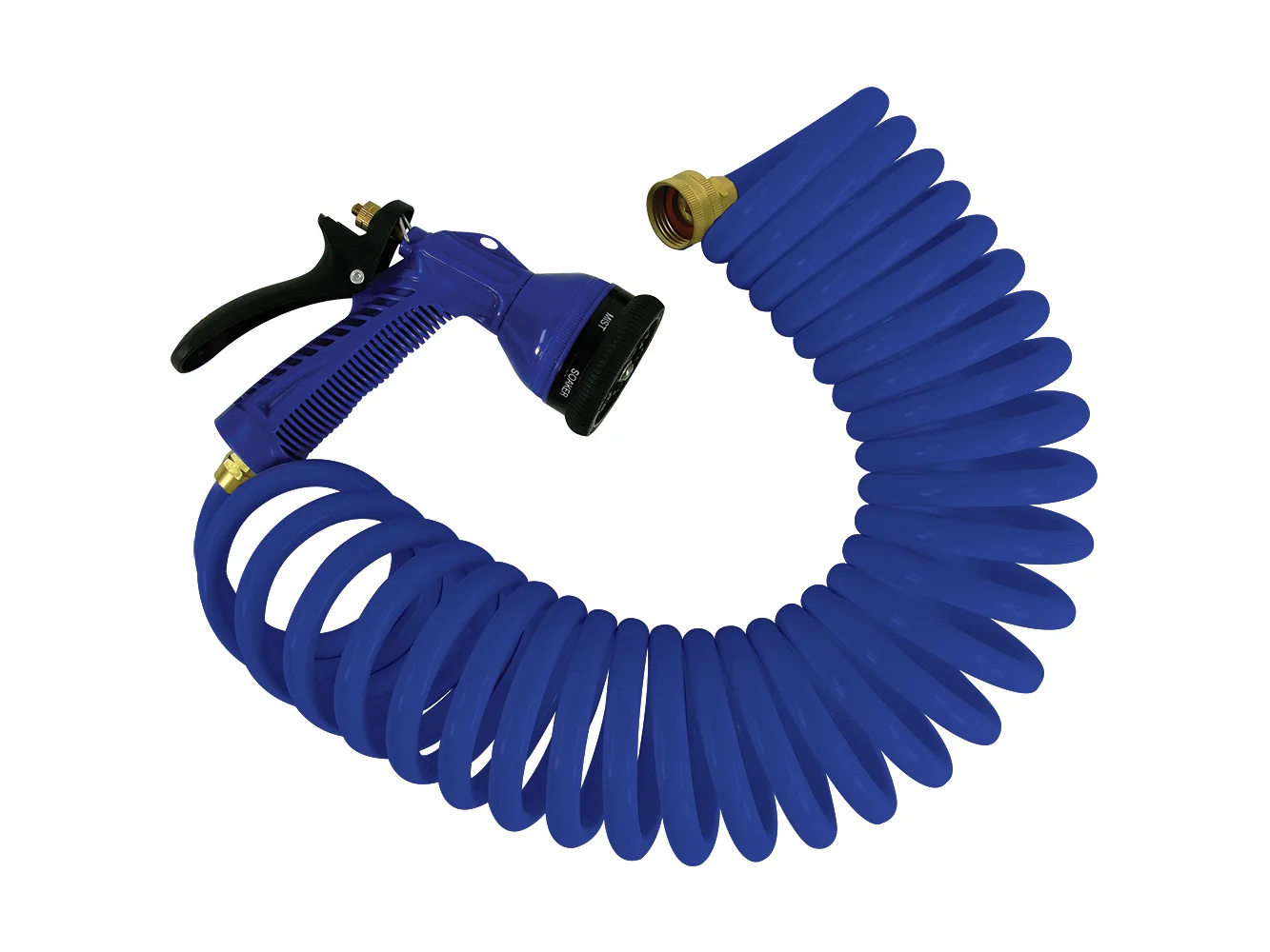 15′ Blue Coiled Hose with Adjustable Nozzle