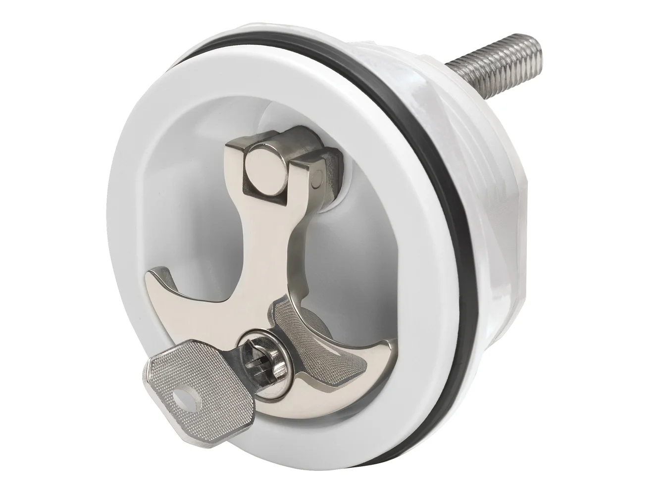 Compression handles reduce and eliminate noise and rattle from hatches when the boat is underway. The handle uses acompressed gasket to create a water-tight seal for compartments or hatches.