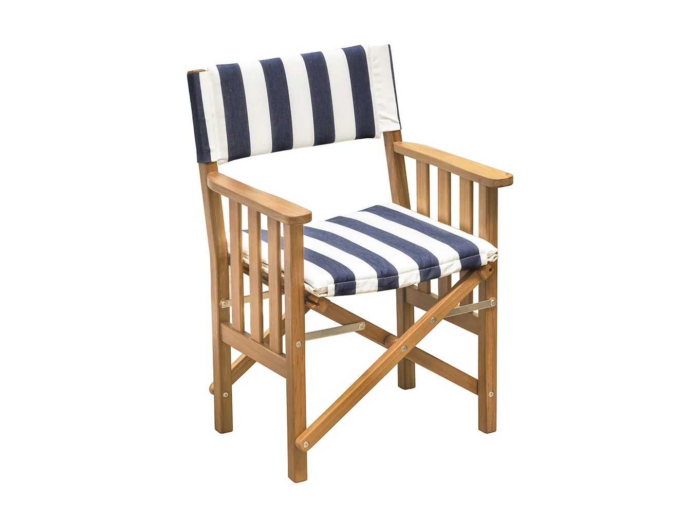 Whitecap Director's Chair II w/Navy & White Cushion – Teak