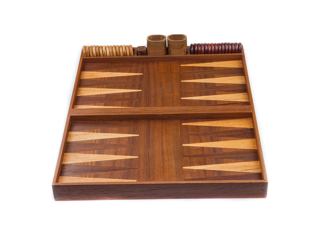• 100% solid teak 2 in 1 Backgammon/Checkerboard