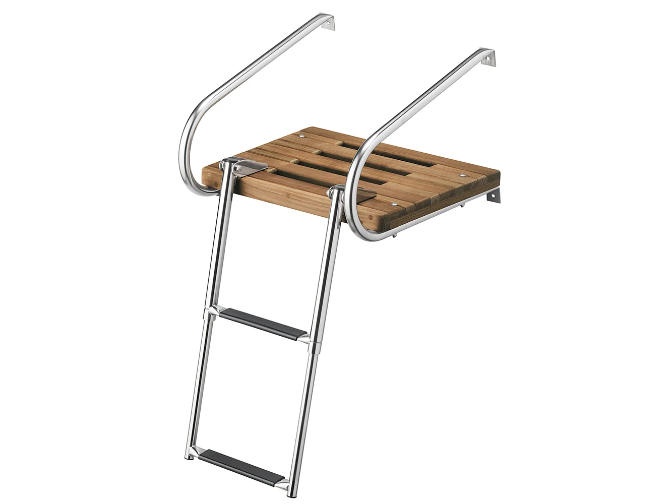 Teak Swim Platform with 2-Step Telescoping Ladder for Boats with Inboard/Outboard Motors
