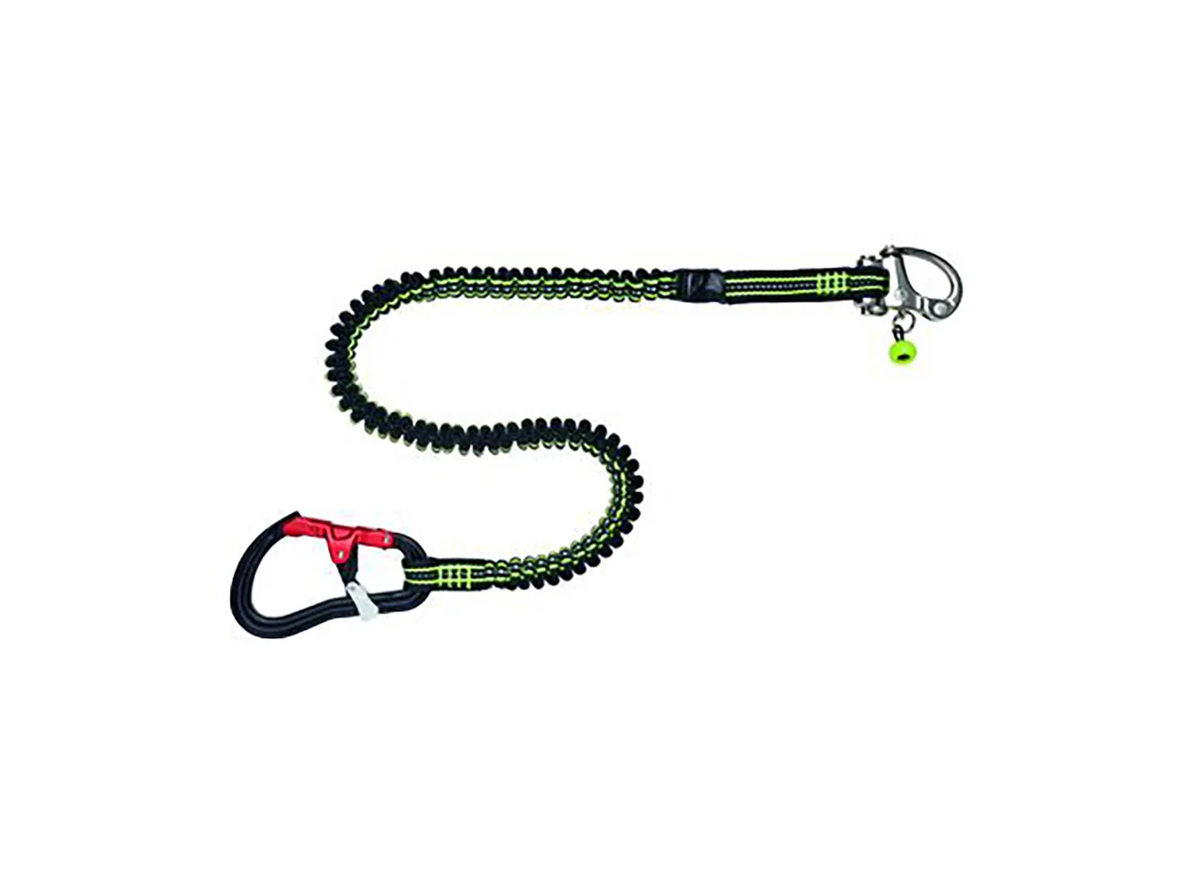 • Tether with 1 double action safety hook and 1 stainless steel snap hook – Elastic webbing – 2m